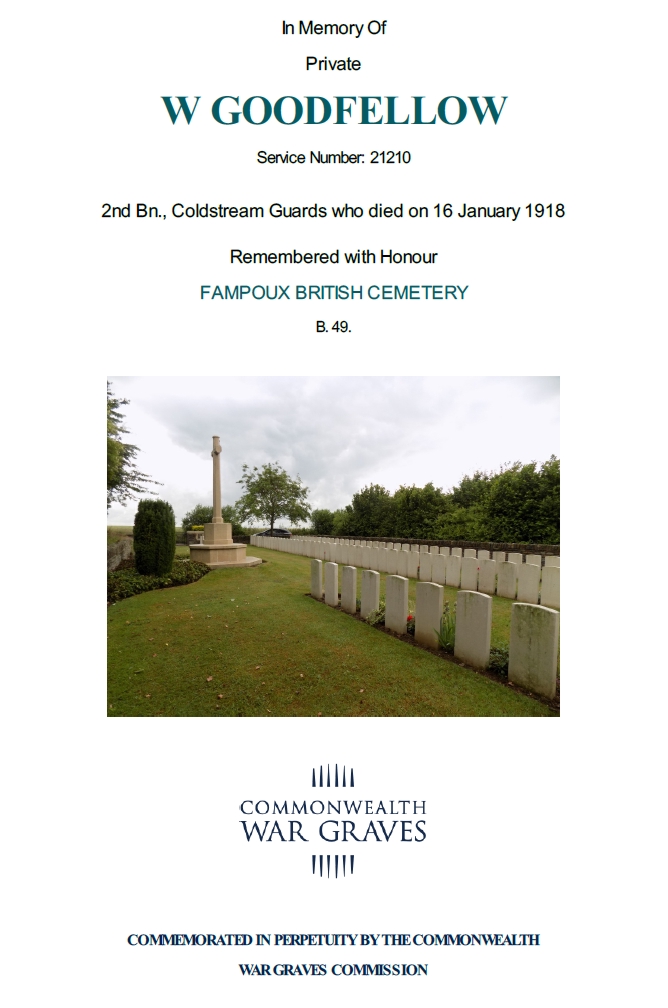 Private 21210 and was killed on 16 January 1918 and is buried in the