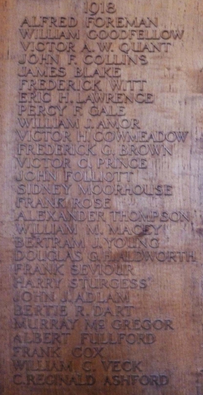 mentioned on the memorial board at All Saints Church in East Harnham.