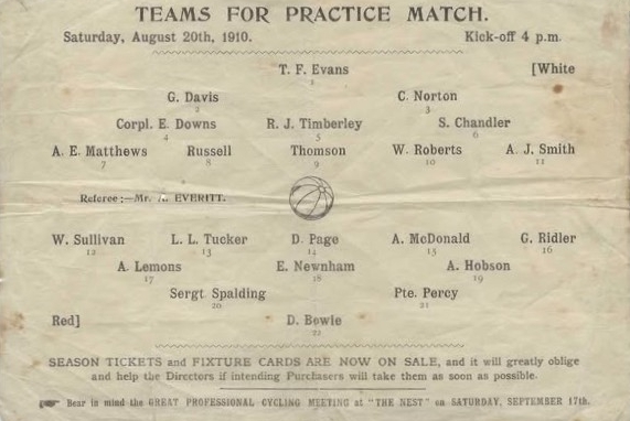 season ticket to The Nest for the 1910-1911 season. It cost 7/6 (37.5p)